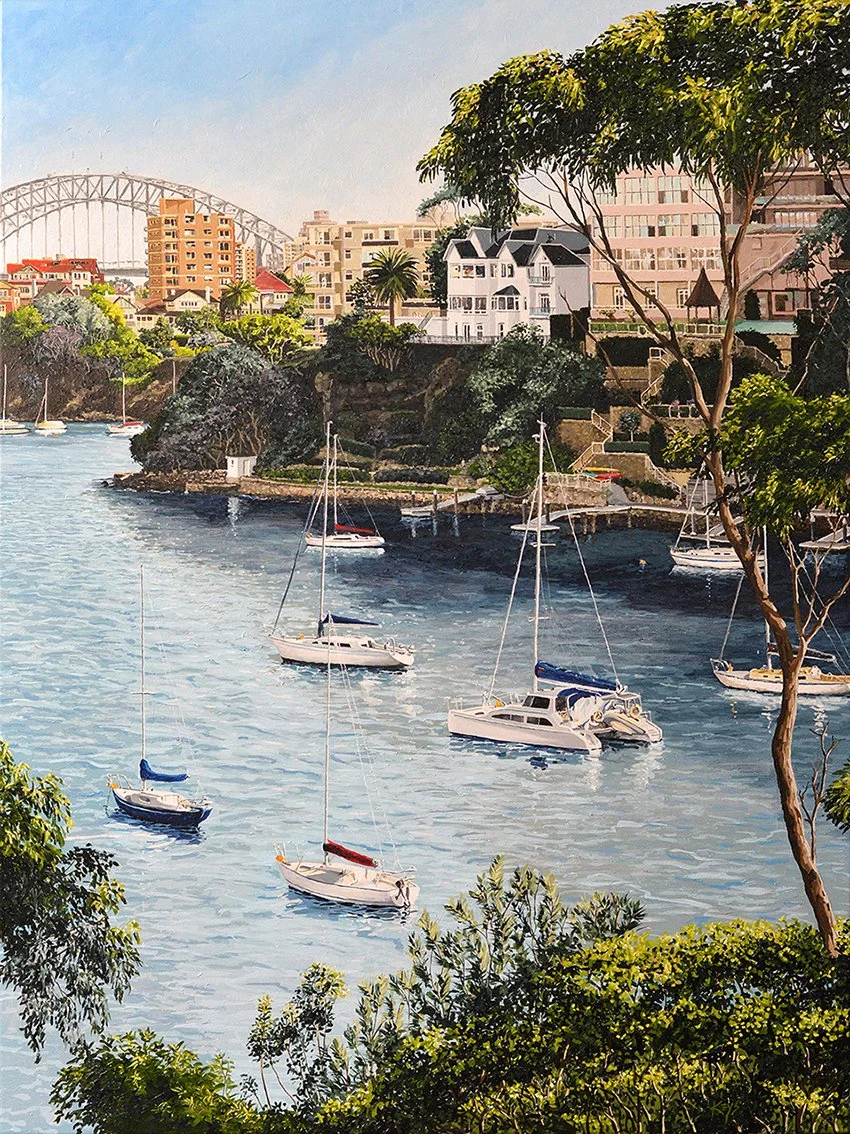 Donald is not a narrative painter, more a chronicler of Australian life—his works are figurative, and delineated in a contemporary realist style. He paints using vibrant colours that are quintessentially Australian. His early works employed quite visible brush strokes to enhance texture which gave them a tactile quality. Later works tend to be focussed on light and shade to create depth and emotion. His works generally feature people enjoying their leisure time surrounded by a mix of man-made structures, or the alluring Australian landscape. Series themes include; heavy industrial, native plants, Australia’s love of the surf, portraits of Artists, and city night life. Donald has featured in over sixty exhibitions—twenty-two of those being solo shows.