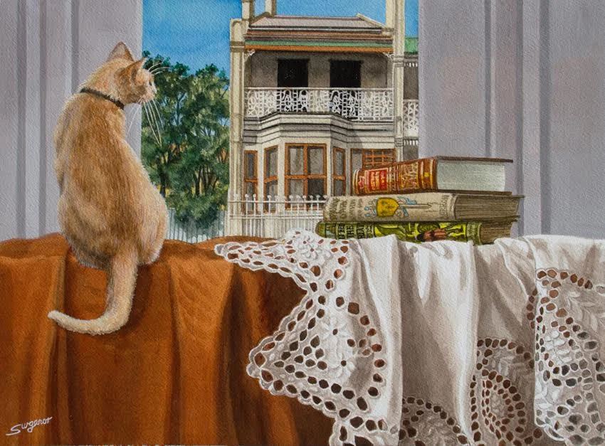 Freda is totally dedicated to her work, when she’s not painting she is thinking about it. She feels that good draughtsmanship is a basis for successful painting and never stops drawing. She works in fine detail using strong colour to create pieces, which glow with life and light. This results in highly successful warm paintings, which demonstrate her ability to capture and recreate the images realistically. This is reflected by the number of her works, which are highly sought after by collectors both in Australia and overseas.