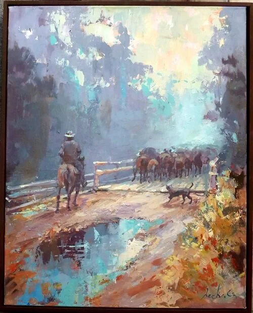 TUTOR: Leeka was regularly invited to conduct workshops in city country areas, teaching pastel, oil and watercolor. Camp Creative 1980-2005, Art in Action 1996- 1999, Mitchell College of the Arts Bathurst University. Castle Hill Art Society 1980-1995, Bankstown Art Society, Royal Art Society of NSW, Blacktown Art Society, Santa Sabina as guest Tutor.