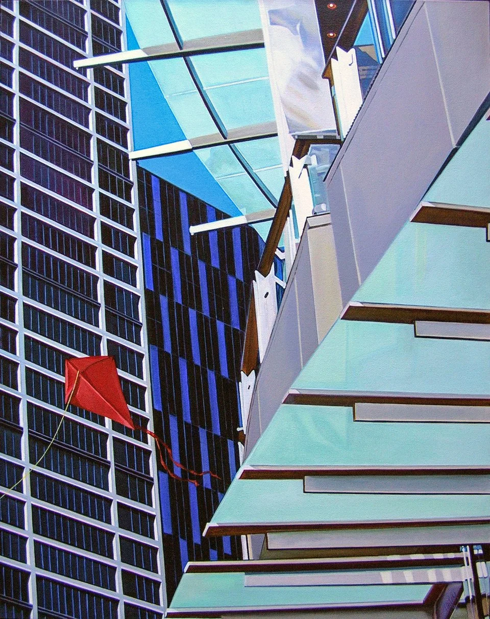 “My style can best be described as realistic though I see my subject matter as abstract shapes to use in my compositions. I often, but not always, favour images using windows and doors featuring architectural detail.” Her work shows a love of process leading to the gradual emergence of the final piece.